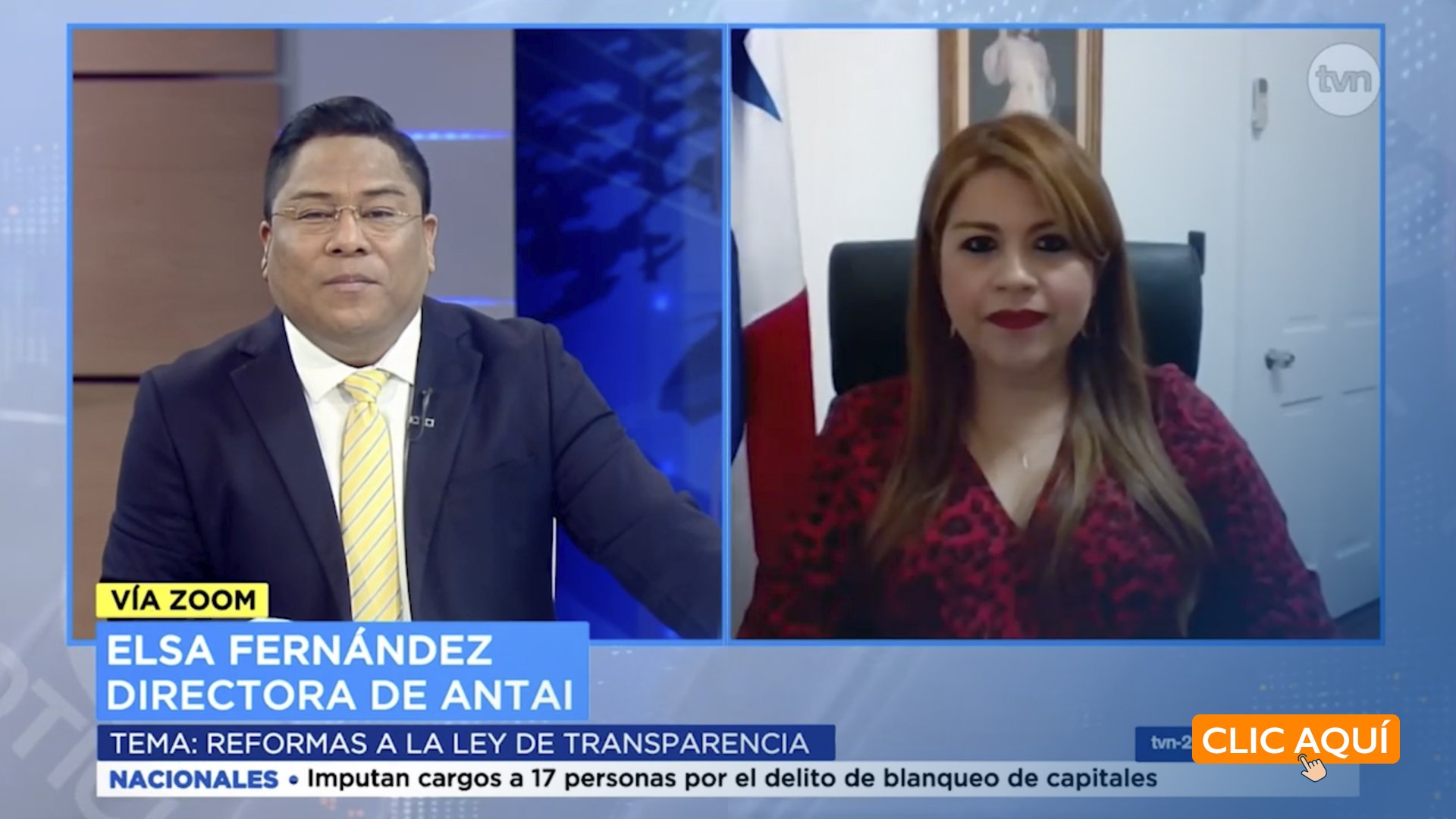 Entrevista en TVN noticias3 de mayo de 2021/en EntrevistasTiempo de lectura: < 1 minutoLa Directora General Mgtra. Elsa Fernández conversó junto al periodista Icard Reyes sobre el derecho de acceso a la información. https://antai.gob.pa/wp-content/uploads/2021/05/Foto-de-portada-web-Entrevista-en-TVN-Noticias-3-5-2021.jpg 400 400 jpitty https://antai.gob.pa/wp-content/uploads/2024/09/logoantaitransparente2024-2029.png jpitty2021-05-03 14:52:482021-05-03 16:06:56Entrevista en TVN noticias