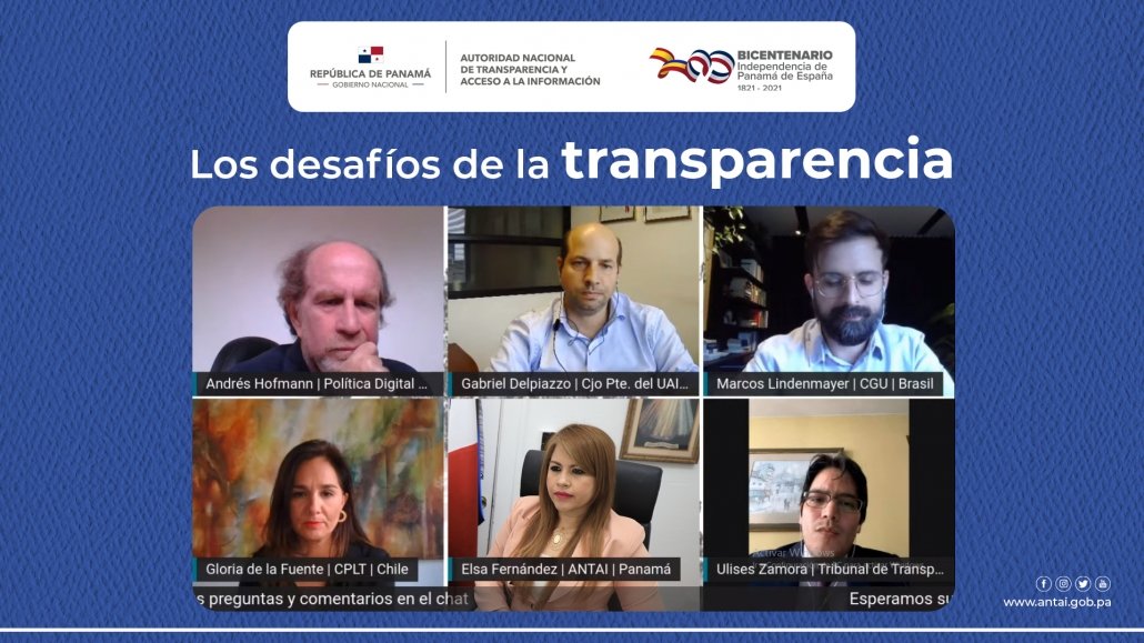 Panamá 26 de marzo de 2021. Representantes de seis países de la región participaron como panelistas en el Encuentro Internacional “Los desafíos de la Transparencia”, donde se pusieron en contexto las experiencias de Perú, Chile, Brasil, Uruguay y Panamá en cuanto a la garantía del acceso de la información.