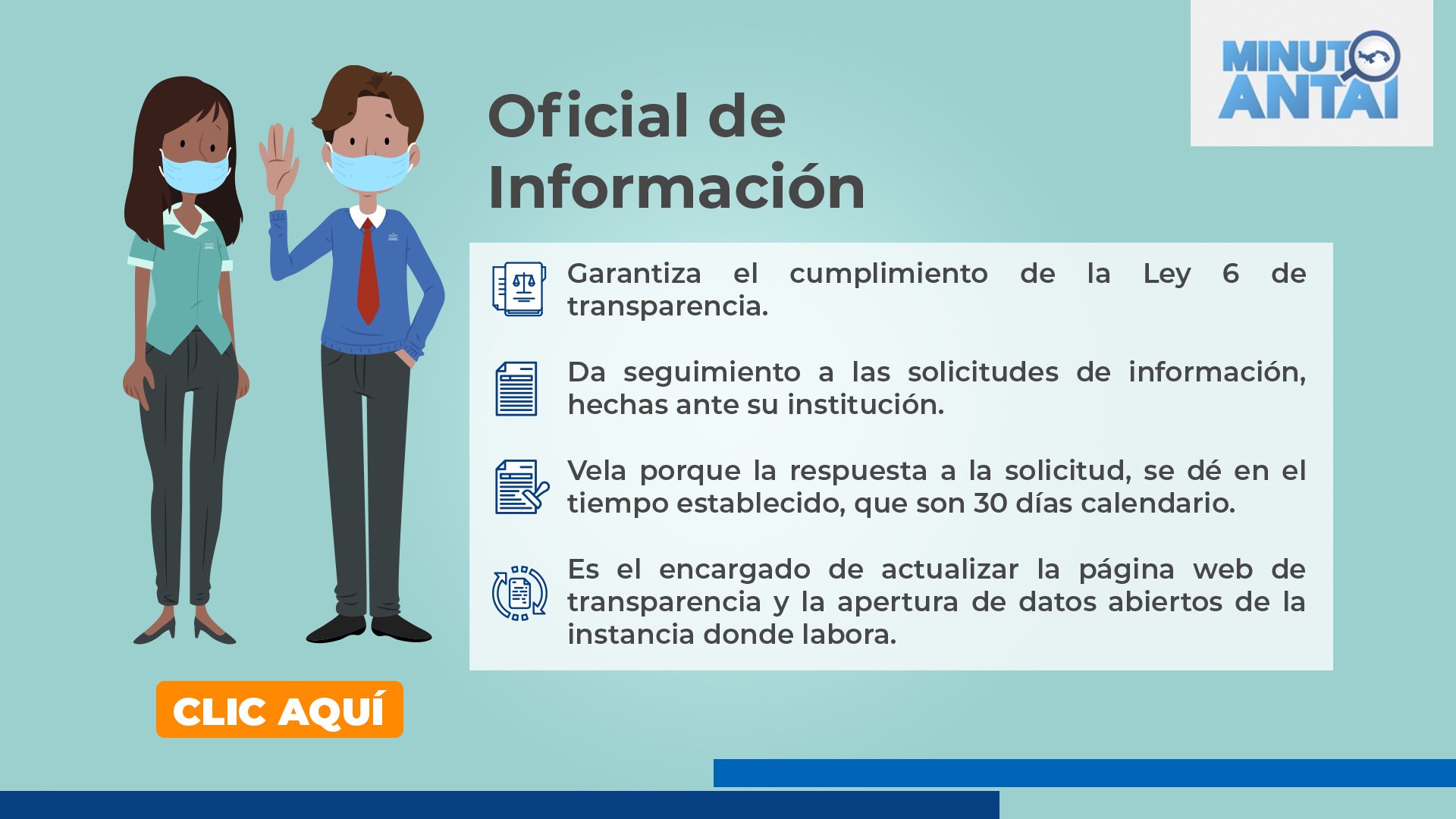 La ley 33 del 25 de abril del 2013 designa al oficial de información como el enlace que tiene #ANTAI dentro de todas las instituciones del Estado.
